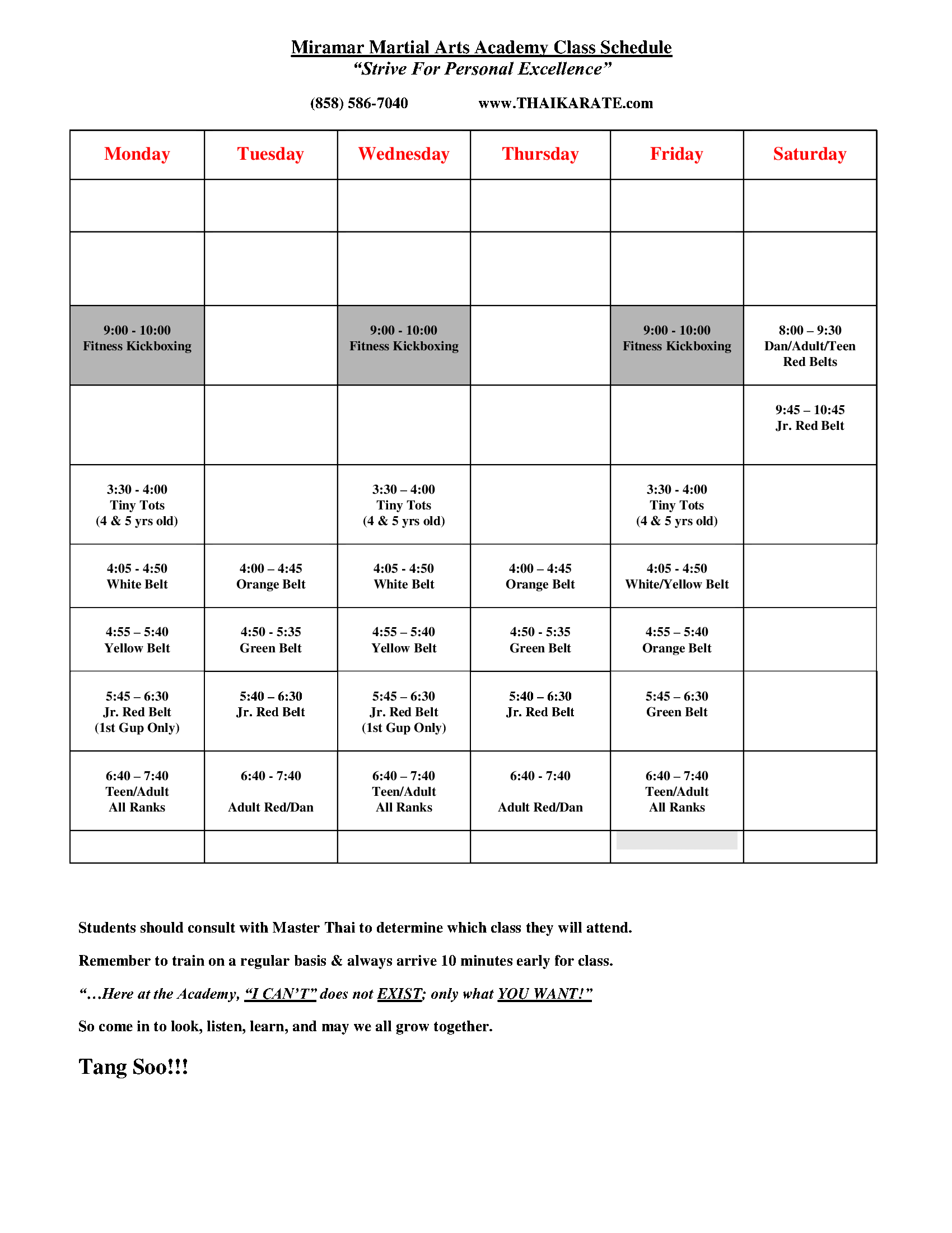 Academy Schedule
